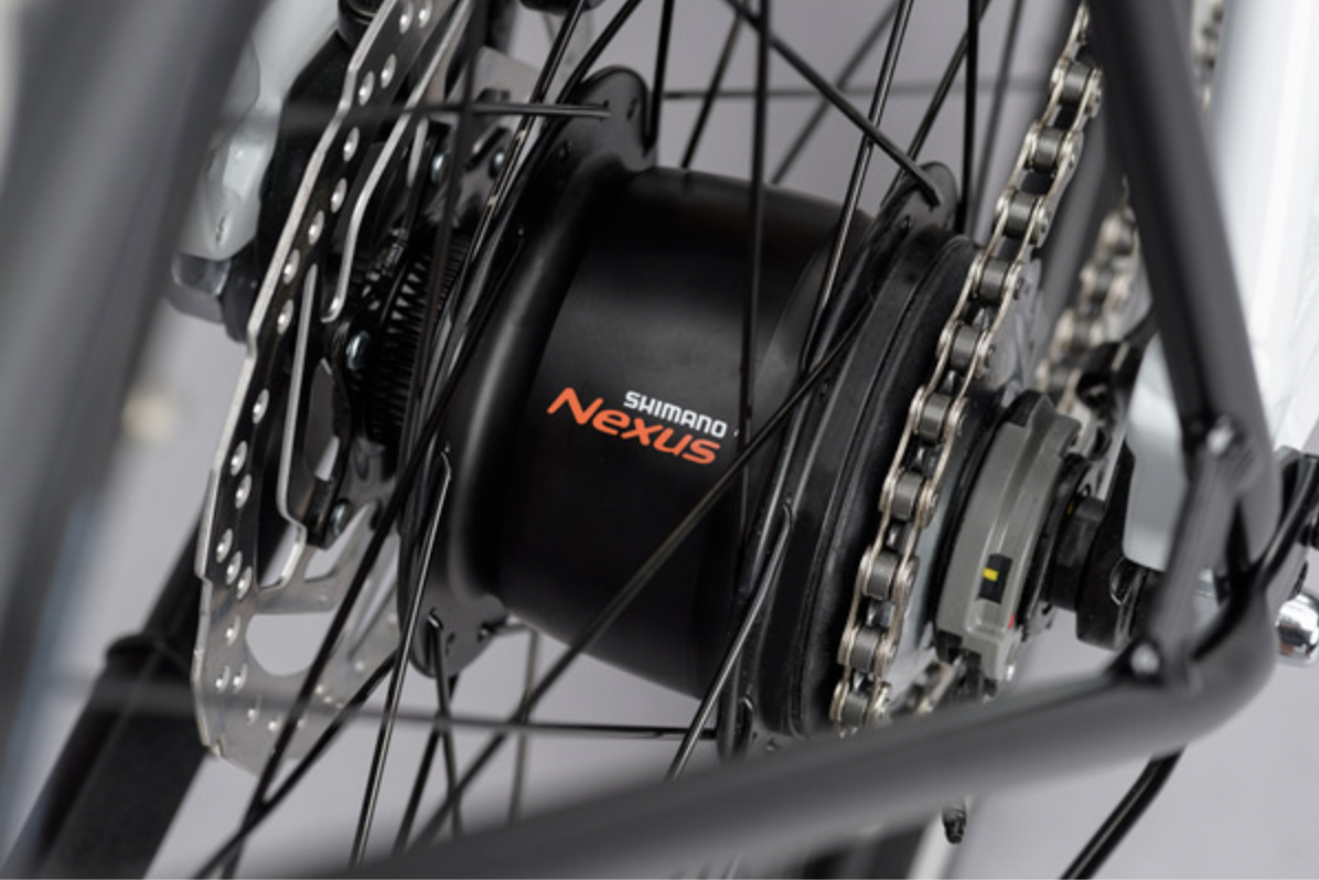 Shimano's Nexus internal hub gear provides the ultimate in worry-free, low maintenance shifting. With the gears concealed within the hub and the chain only rotating (rather than shifting across a cassette in a derailleur-based setup), component parts have an incredibly long shelf-life.